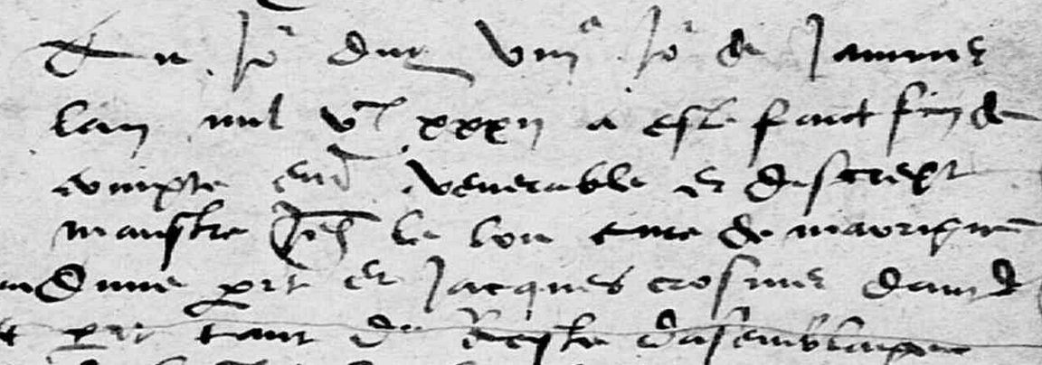 « Au jour d’uy viiiè jour de janvier l’an mil cinq cent xxxii (1532) a esté faict fin de compte entre vénérable et discret Maistre Jehan LE LOU curé de Marrigné d’une part et Jacques CROSNIER d’autre part… »