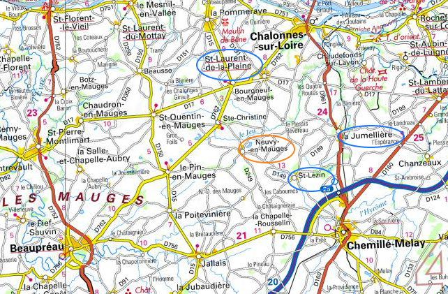 Toujours grâce aux parrains et marraines mentionnés sur les actes de baptême des enfants de René PITON et de Marie BRUNET, je découvre alors que cette dernière a une sœur, Perrine, qui s’est mariée à Saint-Lézin en 1753 avec Mathurin BLANVILAIN natif de la paroisse de La Jumellière. J’ai donc épluché les registres de ces deux paroisses, imaginant que peut-être Marie, sa sœur ainée, y a également convolé quelques années auparavant, sans succès.