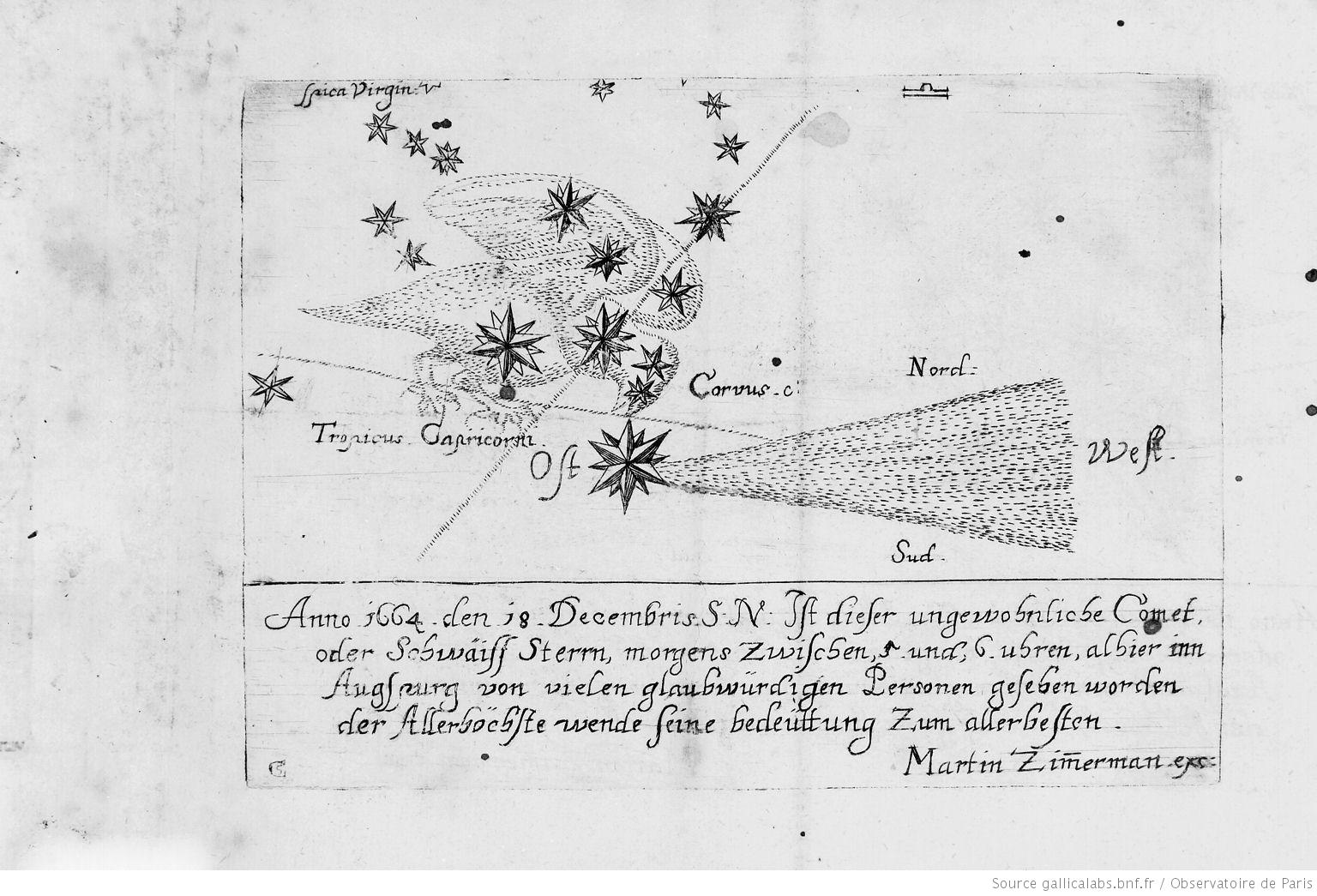 – Illustrations – [Illustration de Warhafftige Beobachtung dess anjez erscheinen den Cometsterns… 1664. ..] – Source Gallica-bnf.fr.