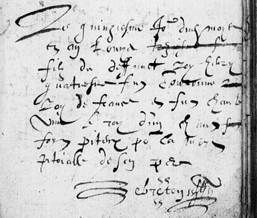 « Le quatorziesme jour dudit moys et an Henri quatriesme roy de France et de Navare fut tué d’un coup de cousteau dans la ville de Paris par un nommé François RAVAILLAC natif d’Angoulesme. »