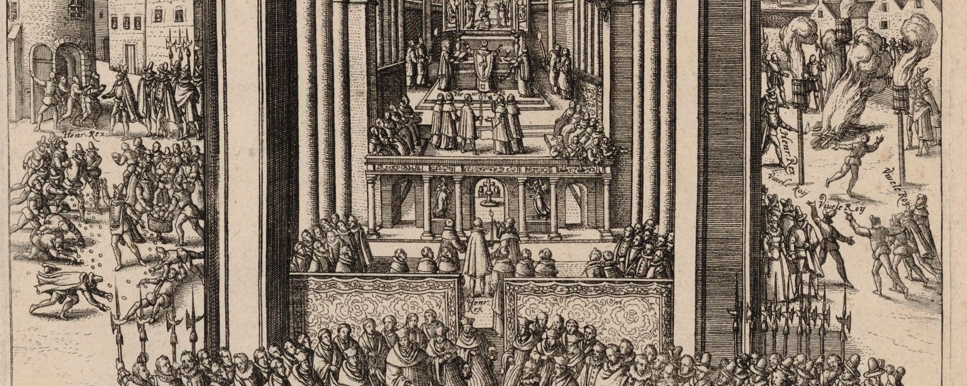 – Illustrations (Vignette) – Abjuration de Henri IV à Saint- Denis (Extrait) – Estampe, GallicaBnF.