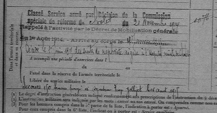 1. Effectivement il devait être en mauvais état déjà quand on l’a envoyé au 72ème RI. La maladie de peau peut peut-être venir de la boue dans les tranchées ? Néphrite ou pleurésie purulente… tout cela donne qu’il n’y avait pas d’antibiotiques à ce moment-là ni pour les unes ni pour les autres pathologies !