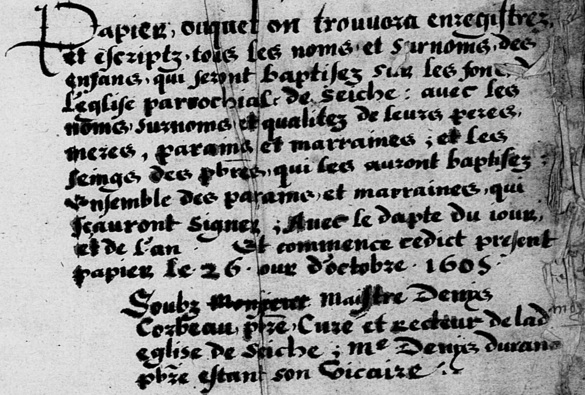 Petite chronique de quelques unes de mes découvertes du mois d’août 2016… Quelques ancêtres de plus, une erreur corrigée et la transcription du plus ancien registre des baptêmes de Seiches…