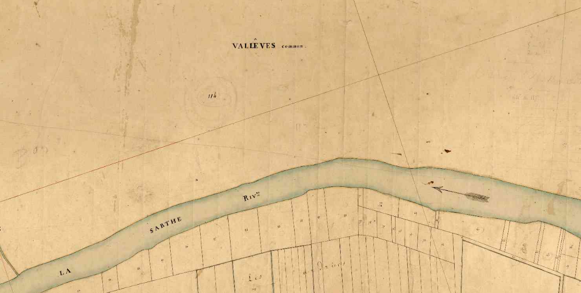 Autrefois, en effet, le Loir et la Sarthe étaient navigables. Les portes marinières sont les ancêtres des écluses modernes. Ces portes, en bois, permettaient aux Moulins de retenir l’eau afin de fonctionner, mais quand un bateau passait, il fallait les ouvrir. (Si j’ai bien tout compris…) On voit ici que c’est le batelier lui-même qui a ouvert la porte et non le meunier. ( A ce sujet voir cet acte transcrit par Mme Odile Halbert sur son blog).