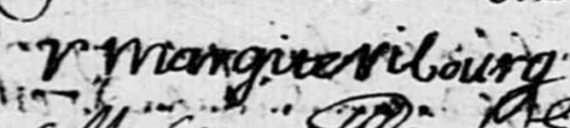 Voici sa signature en 1705. On a l’impression qu’elle a essayé d’écrire Renée Marguerite en entier, mais le résultat est curieux !