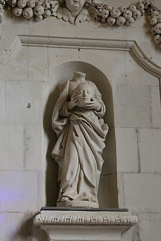 Comment et par quels mystérieux chemins, Sainte Tanche et sa curieuse légende se sont-elles retrouvées en Anjou, je l’ignore, mais l’église de Dampierre-sur-Loire, près de Saumur, possède une statue de Sainte Tanche, représentée, comme il se doit, tenant sa tête entre ses mains.