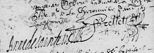 1631.04.10 – FARDIER François “fils de Sébastien FARDIER et de Renée BERNIER, parrain vénérable et discret Me François GRELLET prêtre vicaire de Saint Vincent de La Tour et marraine dame Anne De SAINTE CECILE, épouse de Messire Gabriel DE LA TOUCHE chevalier seigneur de La Charonnière demeurant en ladite paroisse”