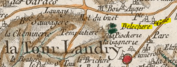 La Denêchère (La Deneschere, Petite et Grande) – Carte Cassini – La Delechere. [Michel VAILLANT et Renée DENESCHEAU – Laurent CHIRON, métayer de la Grande DENECHERE, 1633]