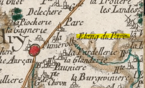 La Cheminerie – Carte Cassini : La Cheminerye. [ Y demeurent aux alentours de 1630, Jacques CHEMINEAU et Marie VINCENT]