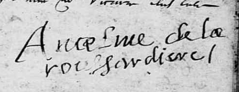 1629.04.26 – GARNIER Anselle « fille appartenant à Symphorien GARNIER vigneron et à Catherine BOULANGER sa femme demeurant au village de Cran, parrain Jehan BODIN aussy vigeron et demeurant au mesme village de Cran, marraine damoiselle Anselme DE LA ROUSSARDIERE fille de noble homme François DE LA ROUSSARDIERE sieur de Rouillon et de déffuncte damoiselle Jehanne DE MONPLACE demeurant au mesme lieu seigneurial de Rouillon »