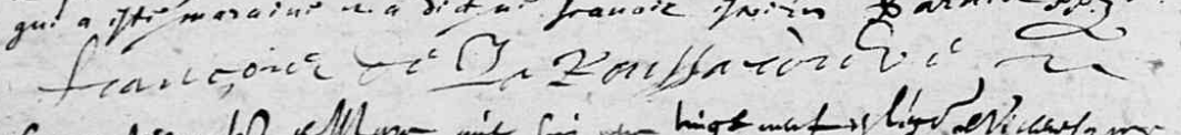 1620.03.27 – CHAUVEAU François « fils appartenant à Michel CHAUVEAU charpentier et à Françoise LONGUENE sa femme demeurant au Petit Souvigné susdite parroisse et a esté nommé François par François De La ROUSSARDIERE escuyer, seigneur dudit Lieu de Rouillon, demeurant à Rouillon qui a esté le parrain et par Guyonne De LA ROCHE veufve de feu Noël GEHANNAULT demeurant aux Grandes Varennes susdite parroisse qui a esté sa marraine [ vue 39/]