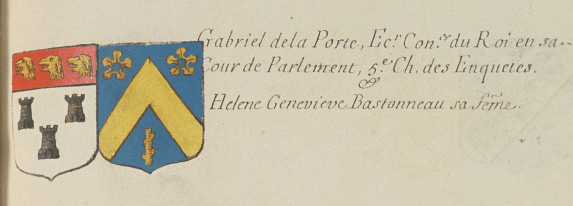 Armes de Gabriel De La Porte – Armorial d’Hozier, tome XXIV, p.1431. (Gallica)