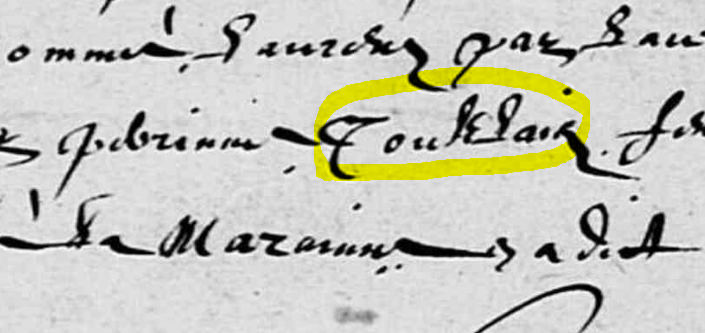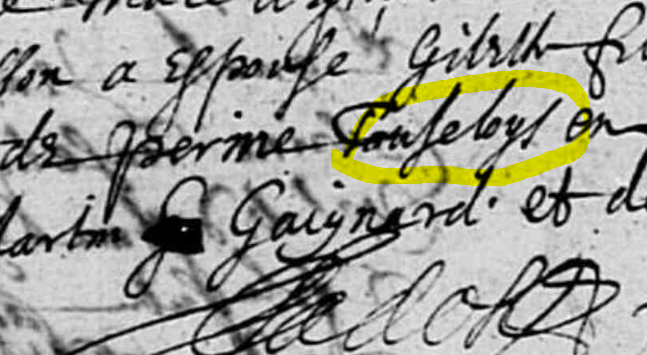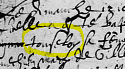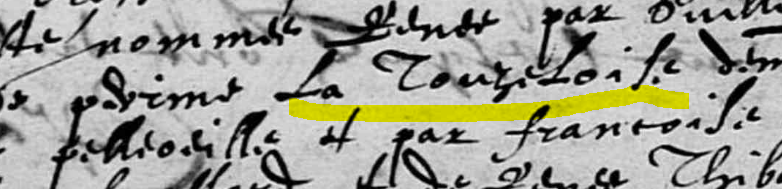 Et voilà comment tout un mythe s’écroule ! Je pense qu’il n’y a pas à hésiter… Aucune TOUTEFOIS dans mon arbre, mais une Perrine TOUSELOIS (avec toutes les variantes possibles !). Maintenant, je vais pouvoir aller chercher plus avant… en particulier à Angers, où un couple Jean MESCHIN/Gillette TOUSELOYS, présent à plusieurs baptêmes des enfants de Perrine, m’intrigue…