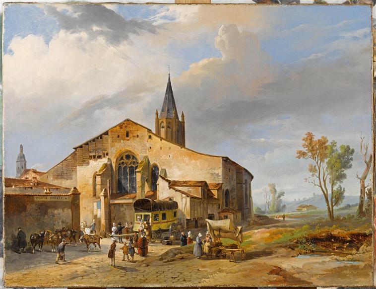 - Auguste-Xavier LEPRINCE, L’arrêt de la diligence à la poste royale, vers 1820.