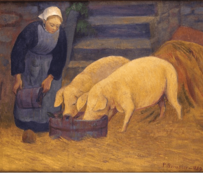 - Paul Sérusier, Bretonne donnant à manger aux cochons, 1889.