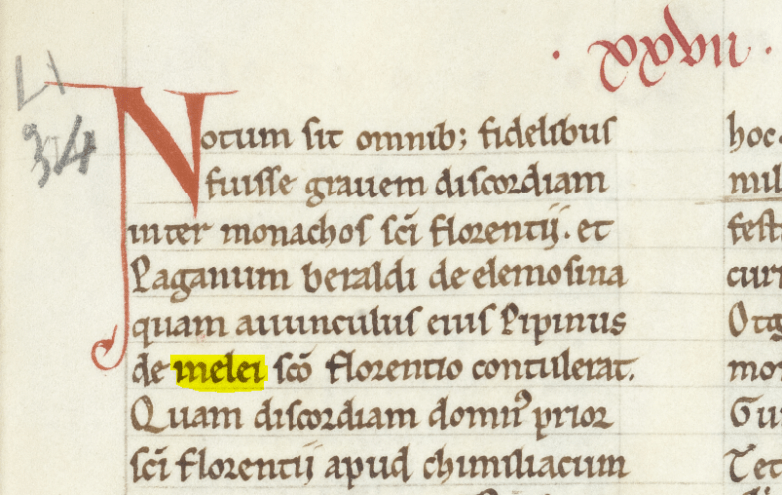 Et voici ce fameux melei tel qu’il apparaît dans le Livre Blanc (Cartulaire de l’Abbaye Saint-Florent).