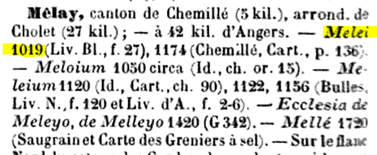 Il y a 1000 ans, en effet, le nom de Melay – sous la forme Melei – apparaissait pour la première fois, comme l’écrit Célestin Port au début de son article consacré à ce village.