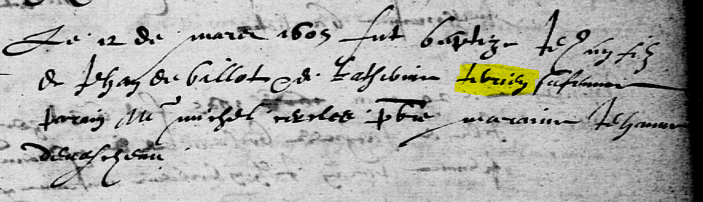 Un drôle de nom … pour une drôle d’ancêtre ! Catherine TEBRIDY serait la mère de Jean DEBILLOT qui aurait épousé une certaine Françoise, dont  Mathurin DEBILLOT, baptisé vers 1650,  petit-fils supposé de Catherine TEBRIDY…  Oh la la ! Déjà trois générations sans acte, voilà qui commence bien mal… qui plus est, si Catherine TEBRIDY n’est pas celle que l’on croit, cela va faire de terribles ravages ; en effet elle apparaît, comme femme de Jean DEBILLOT, 78 fois dans les arbres de Geneanet (dont le mien) !