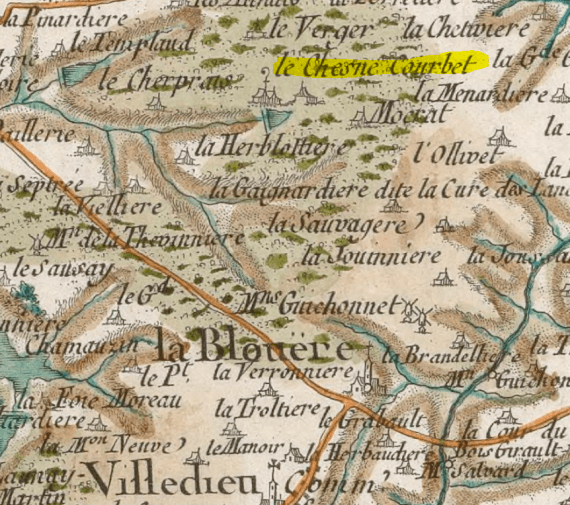 C’est sans doute Sébastien qui s’occupe du mariage de sa sœur. Ce n’est pas un tailleur d’habits mais un tuilier que Jeanne épouse aux alentours des années 1660, il a pour nom Pierre LEFORT et son ascendance m’est inconnue. Il emmène Jeanne avec lui au village du Chêne Courbé – qui s’écrivait en ce temps-là Chesne Courbet – et où elle passera le reste de sa vie.