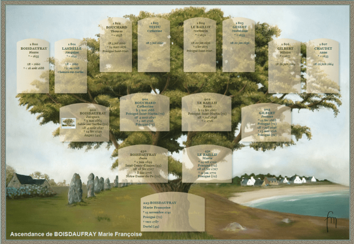 L’une des branches de ma généalogie, celle des BOISDAUFRAY, m’a particulièrement donné de fil à retordre, mais, en échange, c’est aussi celle qui m’a offert le plus grand nombre de découvertes incroyables. C’est ainsi par exemple, que le mardi 22 avril 2014 à 1h26 du matin, je découvrais l’acte de baptême de Jacques BOISDAUFRAY – à lire ici – et que quatre ans plus tard, le dimanche 6 mai à 23h18, je découvrais enfin son acte de mariage avec Catherine BOUCHARD – à lire ici.