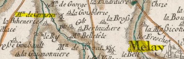 Tout lu sur vos recherches du soldat vendéen votre ancêtre. Notre Mathurin commun (1634-1716 Melay) eut deux femmes : la 1ère Perrine Baranger dont vous descendez ; la 2ème Jeanne CHATEAU qu’il épousa le 04-02-1682 à Melay (1655-18-04-1710 Melay) dont je descends par son fils Louis (22-10-1691 Melay – + avant 1762) x deux fois lui aussi : la 1ère Perrine Houet, mais celle dont je descends est ma N° 185 Marie MOSSET épousée à Cossé le 26-08-1733. Suivent deux générations de Jacques qu’on retrouve tantôt sur Cossé, Coron, Le Voide.