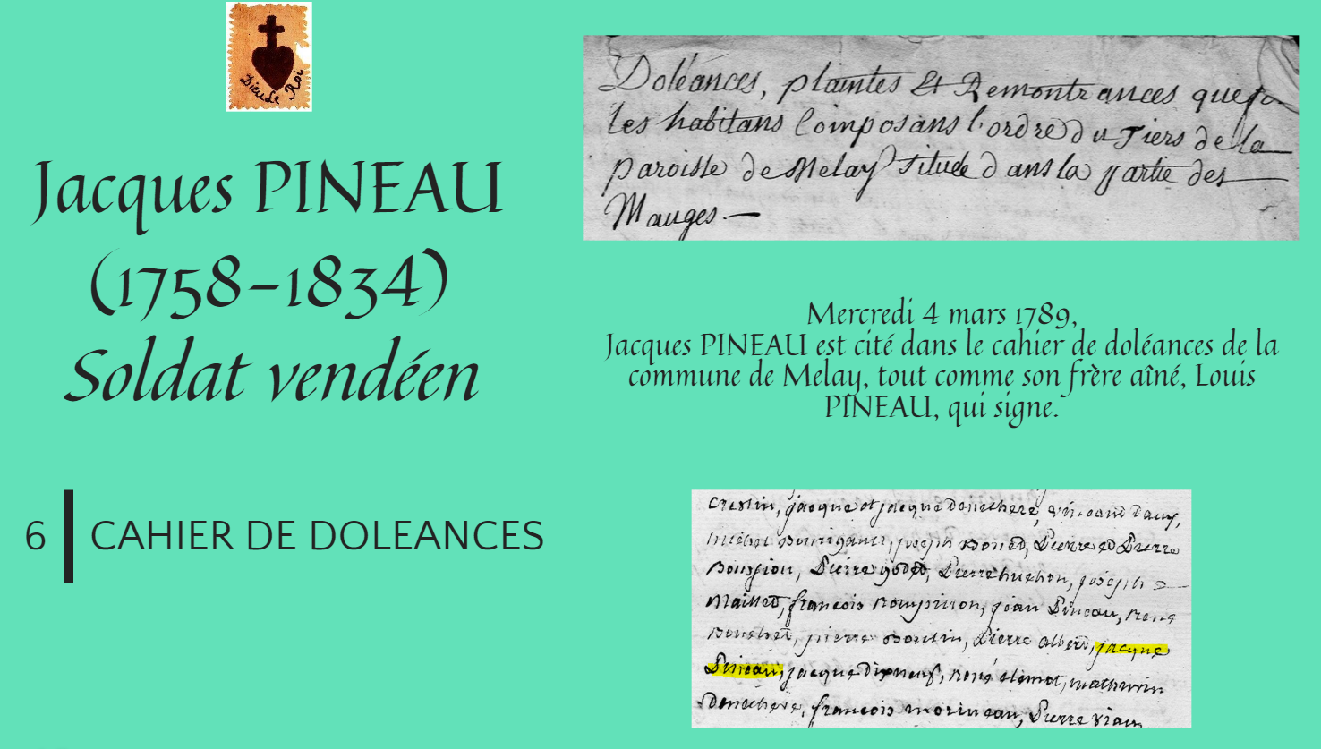 Jacques PINEAU fait en effet partie des citoyens cités dans le cahier de doléances de Melay établi le mercredi 4 mars 1789.