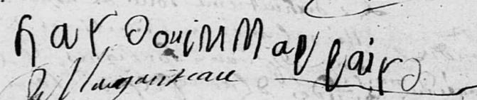 - Hardouin MAILLARD, fils d’Hardouin MAILLARD et d’Anne ARTHUS, deuxième du nom, baptisé le 22 avril 1683, dont voici la signature. Soyez indulgents, il a à peine neuf ans !