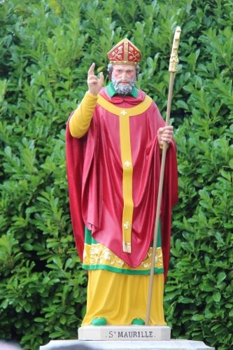Selon l’Encyclopédie MIGNE, Maurilius, évêque d’Angers, était né en Italie, vers le milieu du IVème siècle. Il passa dans les Gaules et se fixa en Touraine où il fut attiré par lé réputation de saint Martin. Après la mort du saint évêque dont il fut quelque temps le disciple, il se retira dans l’Anjou où ses vertus le firent bientôt connaître. Il fut élevé sur le siège d’Angers en 407, et après avoir gouverné saintement son diocèse pendant trente ans, il mourut dans un âge très avancé, l’an 437.