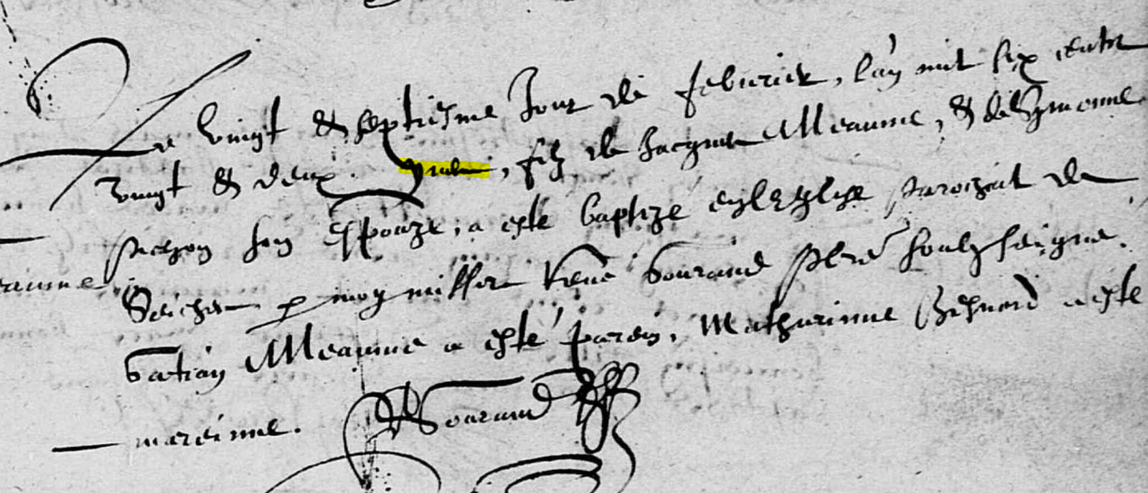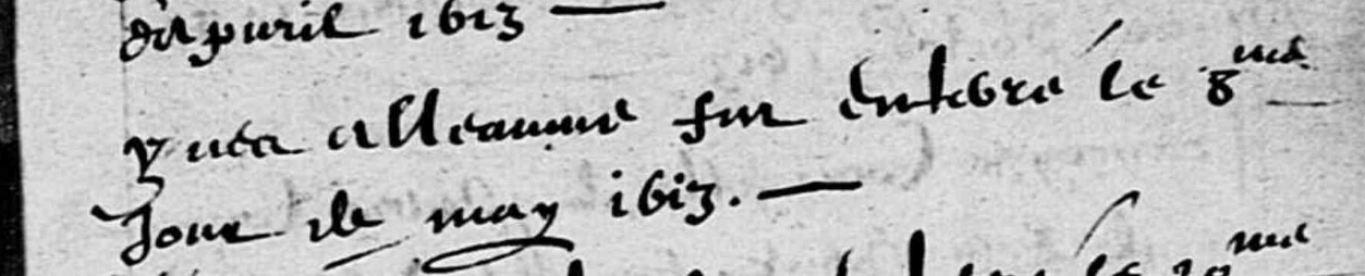 - Gatien ALLEAUME, baptisé le 5 juillet 1604, encore en vie en 1622.