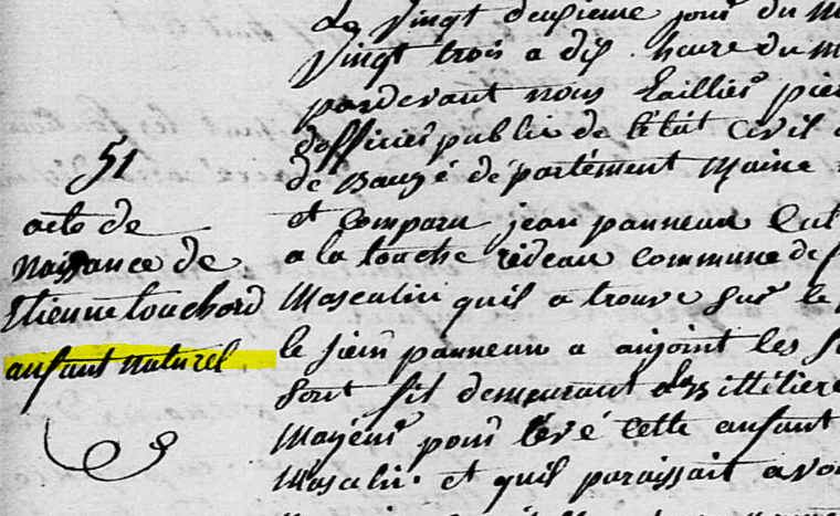 Fougeré, 22 octobre 1823, dix heures du matin, déclaration de naissance d’Etienne TOUCHARD, enfant naturel.