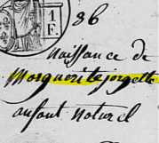… est comparu Julien MICHEL closier, lequel nous a présenté un enfant qu’il déclare avoir trouvé hier soir sur les huit heures du soir dedans un panier placé à côté de sa porte… du sexe féminin, âgé d’environ un jour, vêtu d’un langeux, trois chemises fines, deux mouchoirs rouges et d’un bonnet brun… »