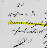 Marie Cunégonde, le 4 mars. Le prénom Marie, c’est bien. Le nom de famille Cunégonde est plus improbable, j’en conviens… mais la Sainte Cunégonde, c’était le 3 mars.