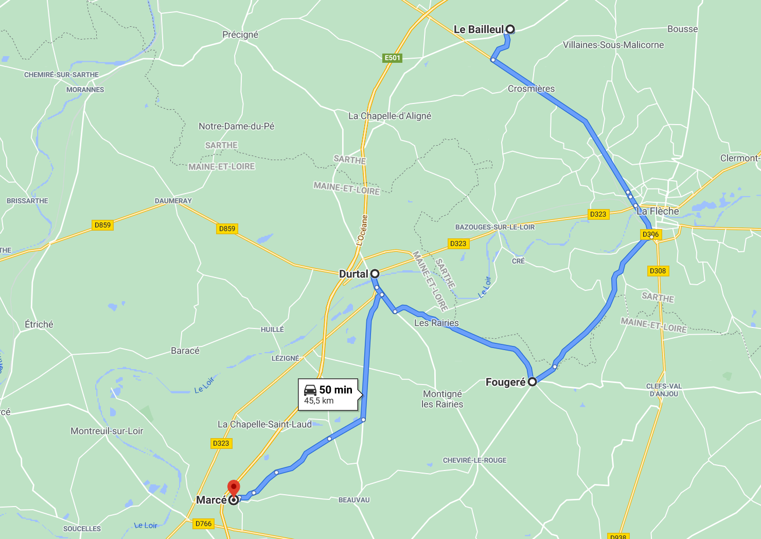 Peut-être était-ce pour se marier ? Mais on ne trouve rien d’autre sur les registres de Bailleul et c’est seulement en 1859, soit dix ans plus tard, que Noël ETIENNE, cultivateur, devenu désormais Noël RITOIT, se marie. Le 11 juillet 1859 en effet, il épouse Louise HAMMONEAU, cultivatrice comme lui, à Durtal.