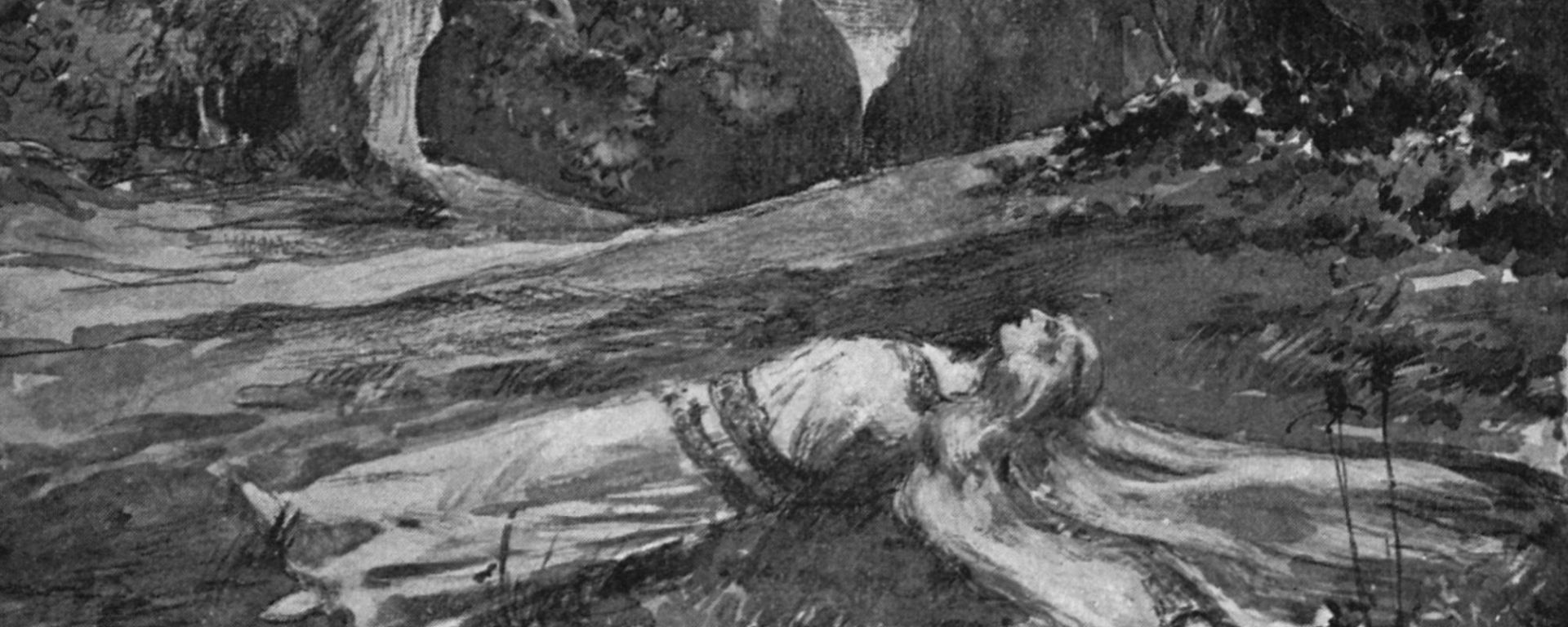 Des fois, aux veillées, dans notre maison d’où beaucoup ont été sortis depuis, « les ceux » qui restent rappellent de quelle manière, avec ses contes et son riant babil, elle nous allégeait le silence mortuaire des soirées, tout pendant la mauvaise saison. Mais rien, jamais, ne remet en scène les angoisses imaginaires du passé comme la légende de cette princesselette mièvre et souffreteuse qu’en me berçant bien des fois elle évoqua, gisant, parmi son suaire de cheveux blonds, sur la mousse humide du mitan des bois, entre les halliers centenaires où le vent fatal sanglote dans les feuillardes, – le conte de cette frêle chercheuse d’Idéal, que la Force brutale a meurtrie comme elle meurtrissait déjà, il y a bien longtemps, dans la forêt d’Ardenne, pour un petit brin d’éternelle…