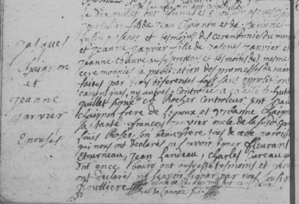 Jacques CHAIGNON ca 1680-1731/ x 1702 Jeanne JANVIER