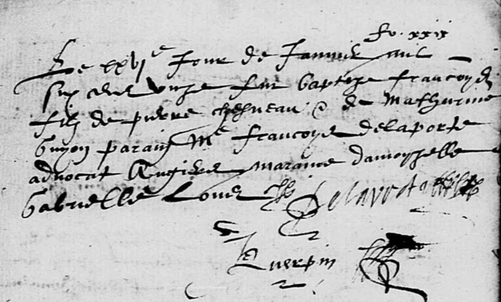 Une petite visite aux AD49 – en cherchant tout de même la bonne paroisse à Angers ! – et l’on découvre que le 26 janvier, est le jour du baptême de François CHESNEAU, fils de Pierre CHESNEAU et de Mathurine GUYON.