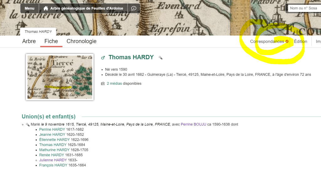 Sur Geneanet, la petite coche Correspondances est rouge… Signe que peut-être je vais découvrir de nouvelles informations…
