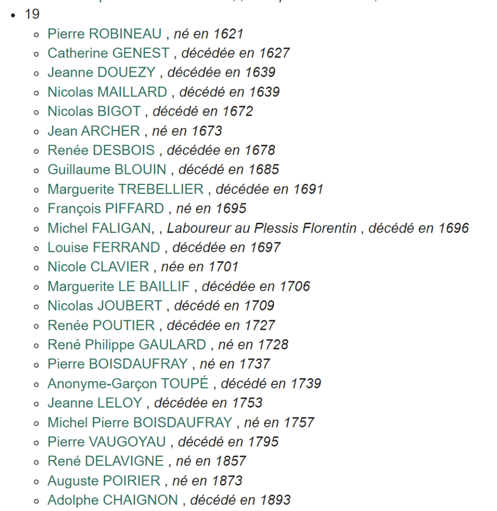 Pour les décès, voici tous les décès de mon arbre ayant eu lieu un 19 novembre : Il y en a 25.