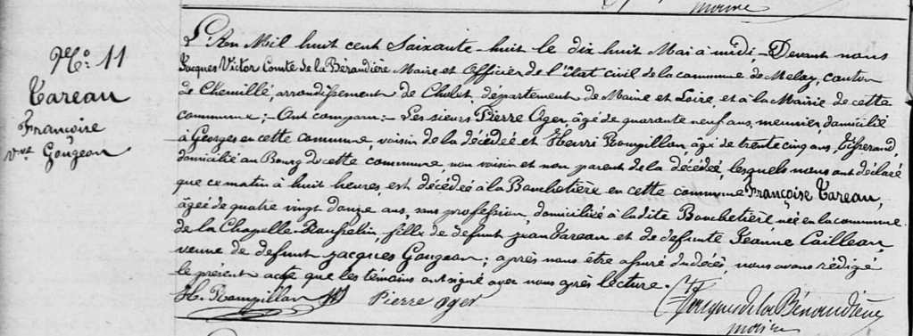 Acte de décès de Françoise TAREAU veuve GOUGEON – (AD49)