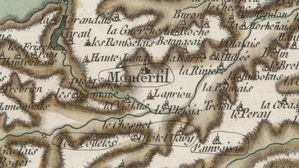 Tous les enfants de Tanguy TOUPÉ et d’Anne HERVIAUX sont nés et décédés au lieu-dit des Couettes, situé, comme on peut le voir sur la carte Cassini, non loin de L’Hôtel-David (ou Davy) et de Pain Voisin (ou Pays Voisin).