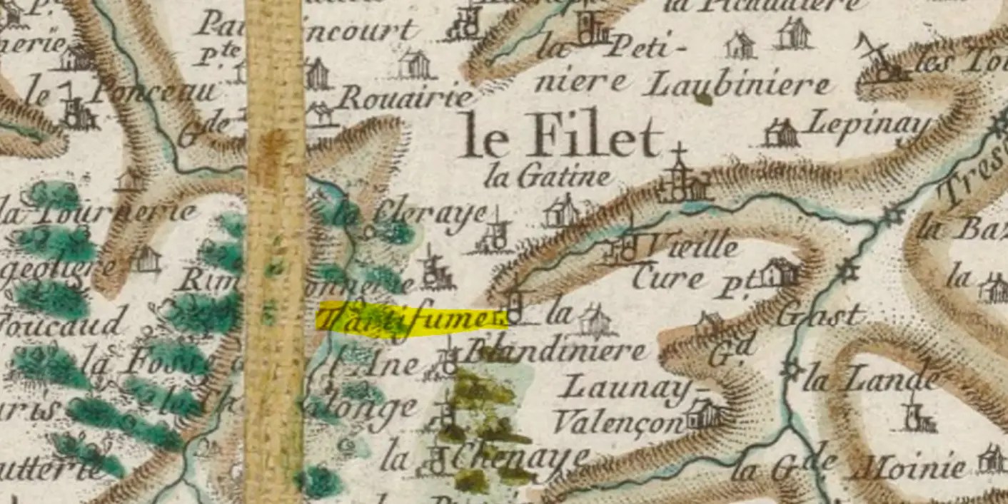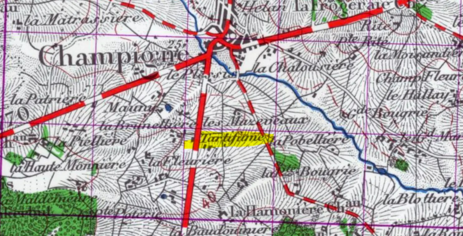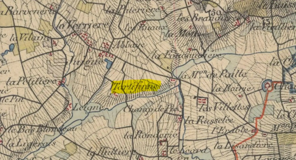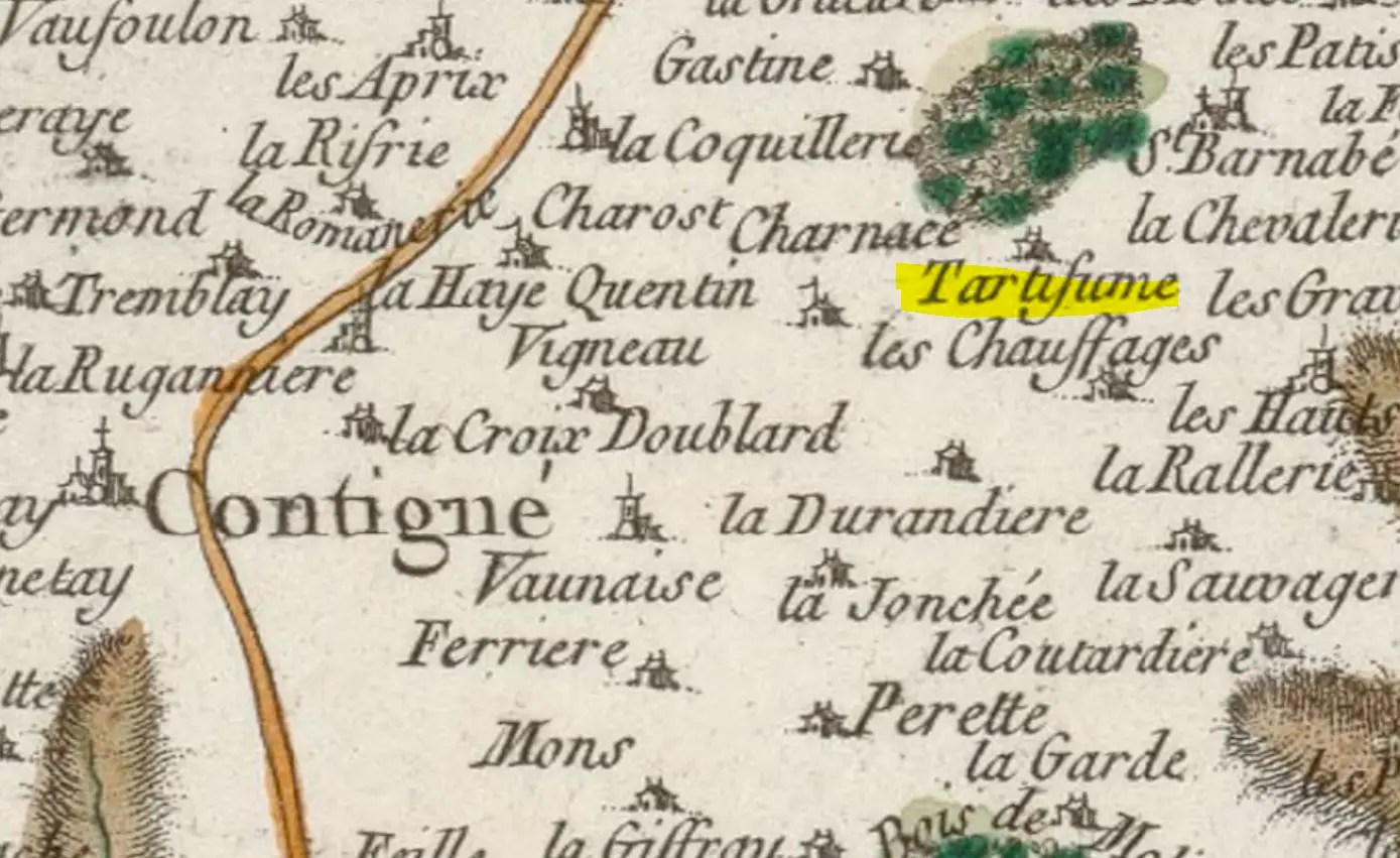 Il existe un lieu-dit, assez fréquent en Anjou, notamment dans le Maine-et-Loire, mais pas seulement; dont j’aime beaucoup le nom, c’est Tartifume. Comme nous avons la chance, toujours dans le Maine-et-Loire, de posséder le dictionnaire de Célestin Port, accessible en ligne sur le site des AD49, dans lequel un grand nombre de lieux-dits sont répertoriés, je me suis mise à la recherche de tous les Tartifume cités par l’archiviste sur ma carte préférée, accessible celle-ci sur Gallica, j’ai nommé bien-sûr la carte de Cassini.