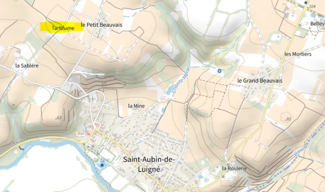 Et il y a aussi un Tartifume à Villevêque, non cité par Célestin Port. (Non trouvé sur la carte de Cassini).