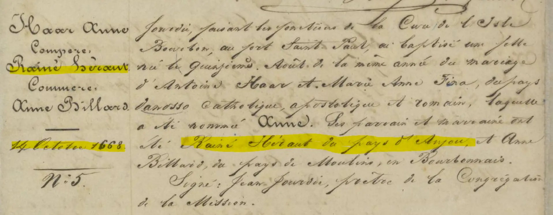 Il est le parrain d’Anne HAAR, le 14 octobre 1668 à Saint-Paul.
