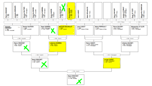 Les métayères de L’Hertuzière sont en jaune. Les croix vertes signalent les hommes nés à l’Hertuzière ou devenus métayers de l’Hertuzière par alliance. (Cliquez pour agrandir)