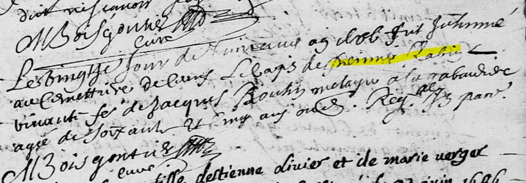 « L’acte le plus ancien,sur lequel apparait Perrine « Rabin »,est l’acte de mariage de sa fille Laurence »…
