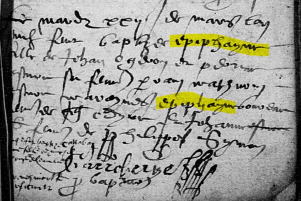 Le mardy xxii de mars l’an susdit fut baptisée Epiphayne, fille de Jehan OGERON et Perrine (ESNOU?) sa femme, parrrain Mathurin (ESNOU?), marraines Epiphayne BOUREAU femme de Jehan ? et Jehanne femme de Phillippe SYMON.