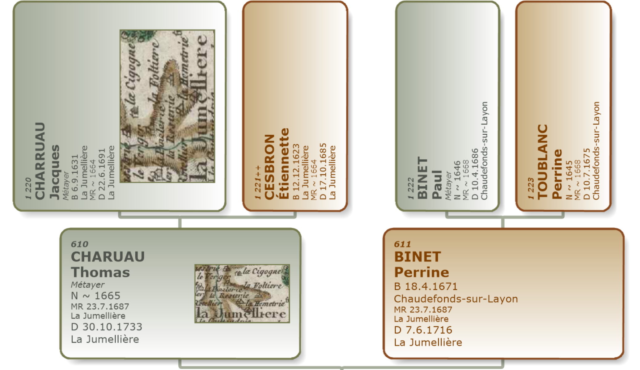 Un témoin problématique Le 23 juillet 1687 mon ancêtre Perrine BINET épousait à La Jumellière Thomas CHARRUAU. Le vingt et trois de juillet 1687 le sacrement de mariage a esté administré par nous prestre vicaire soussigné à Thomas fils de … Lire la suite A la recherche de Paul BORDEREAU, grand-père mystérieux