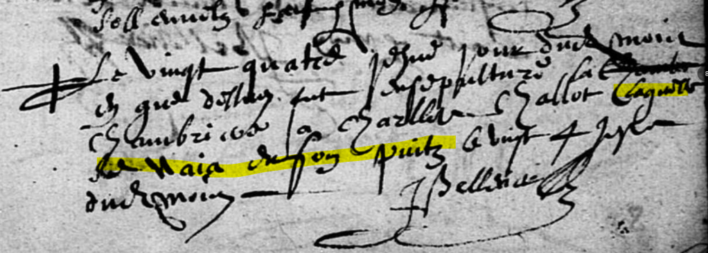 Le vingt quatriesme (quatre iesme) jour dudit mois et an que dessus fut ensepulturé la chambriere à Charles CHALLOT, laquelle se naia en son puitz le vingt quatriesme (vingt 4 iesme) dudit mois.
