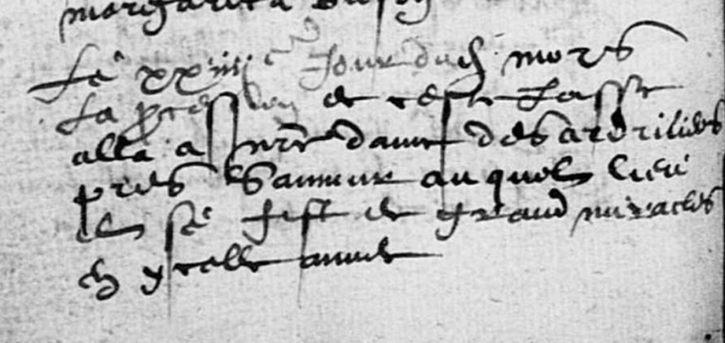 Le xxiiii è jour dudit mois la procession de ceste paroisse alla à Nostre Dame des Ardilliers près Saumur, auquel lieu il se fist de grand miracles en ycelle année.