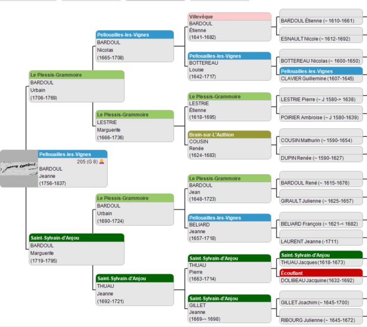 Ainsi que ces familles du Plessis-Grammoire, grands parents de Jeanne Bardoul qui sont miennes: